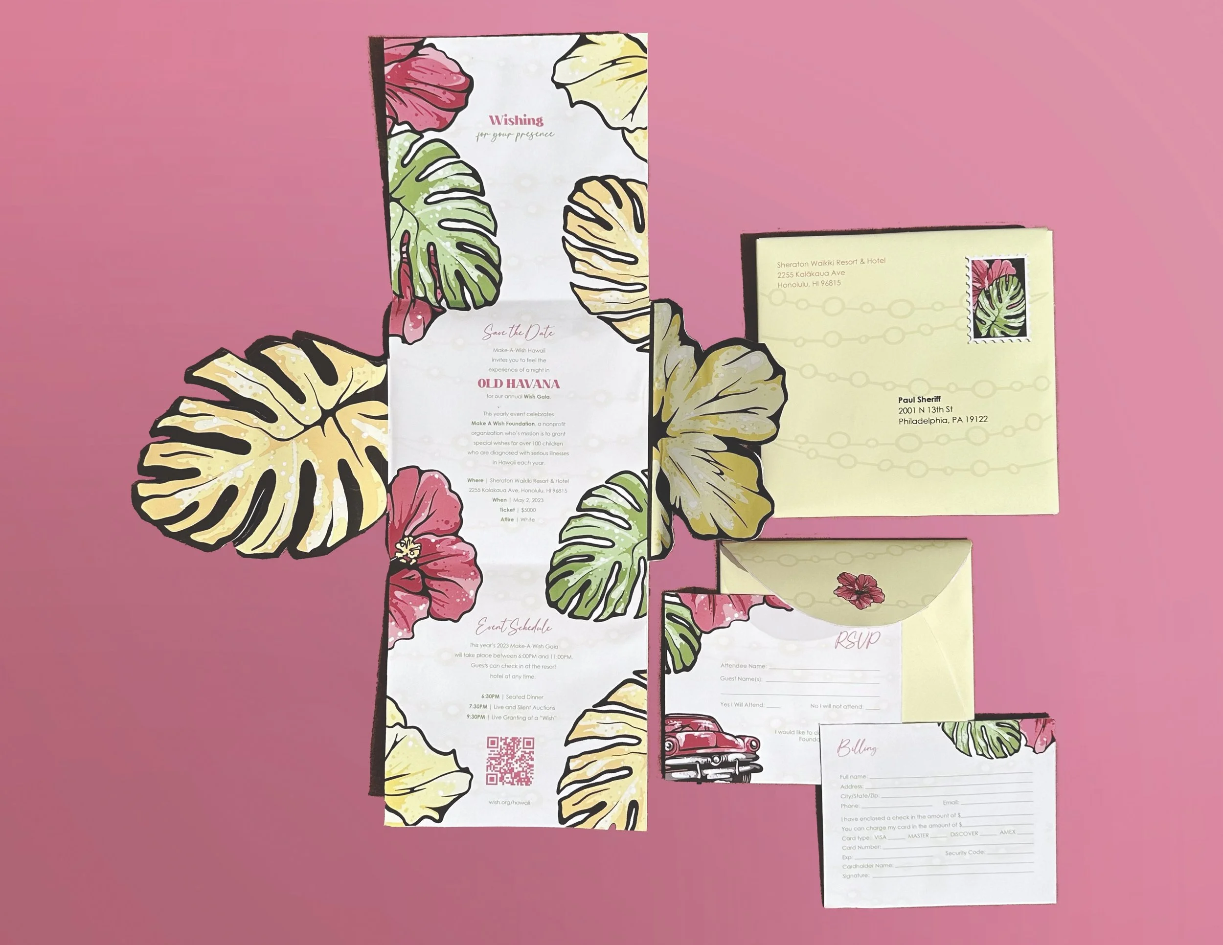 multi-layered invitation with collateral cards for Hawaii’s Make-A-Wish Foundation Annual Gala.